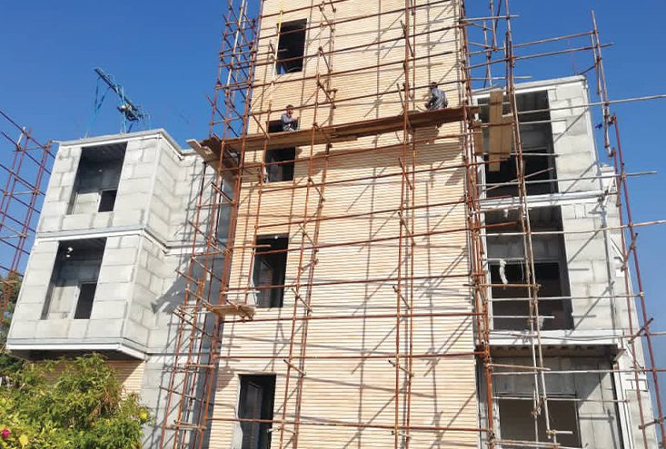 Construction of 2 building camps for Khark petrochemical complex in Khak island with total area of 8,000 square meters in 1 floor with concrete skeleton and 3 floors with metal skeleton; including construction and installation of metal skeleton, electrical and mechanical utilities as well as landscaping;